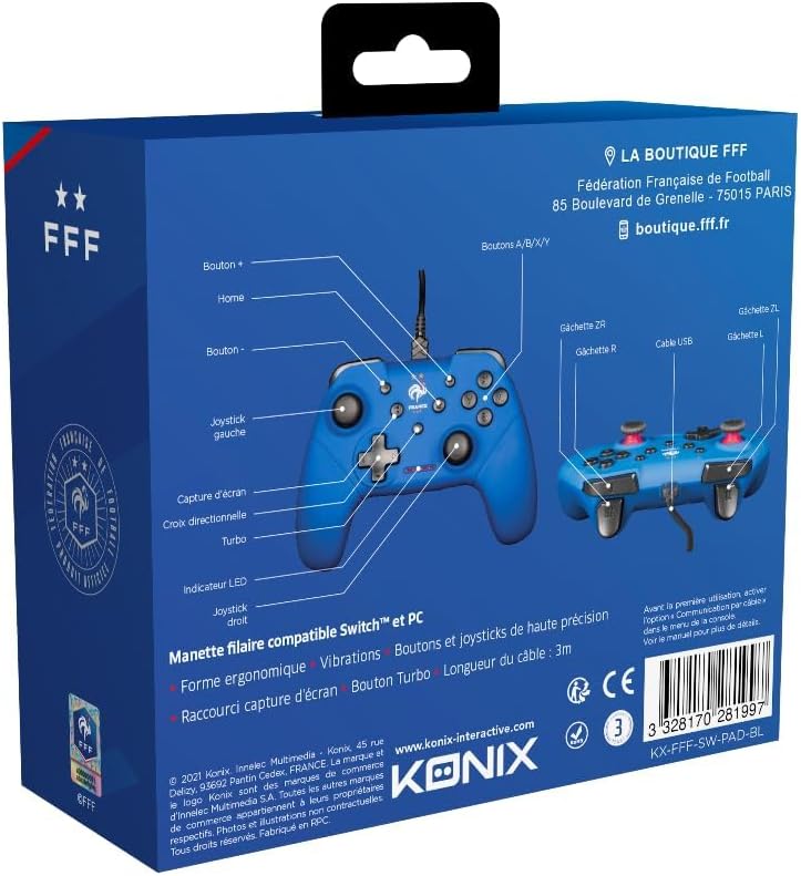 Manette Filaire Pour NINTENDO Switch Konix Edition FFF – Bleu