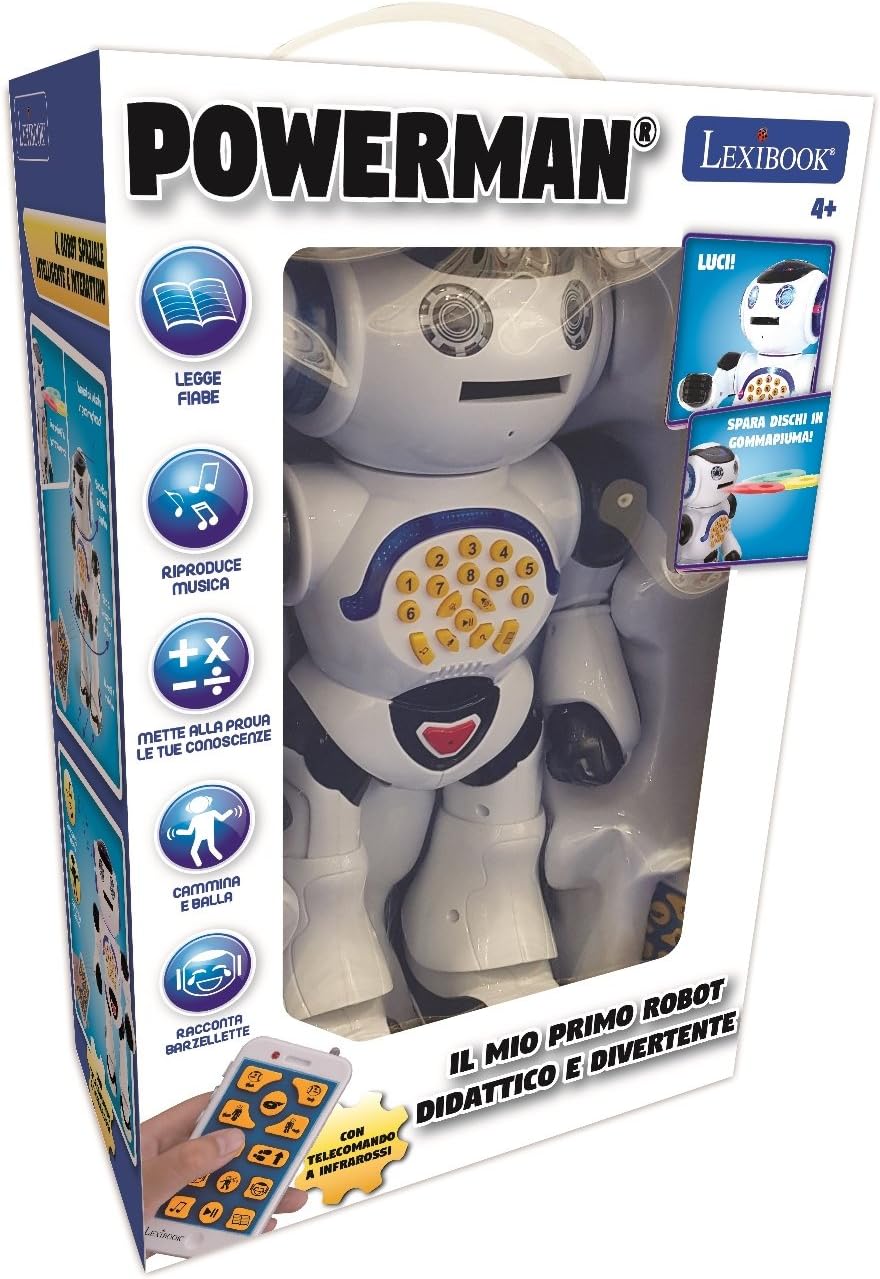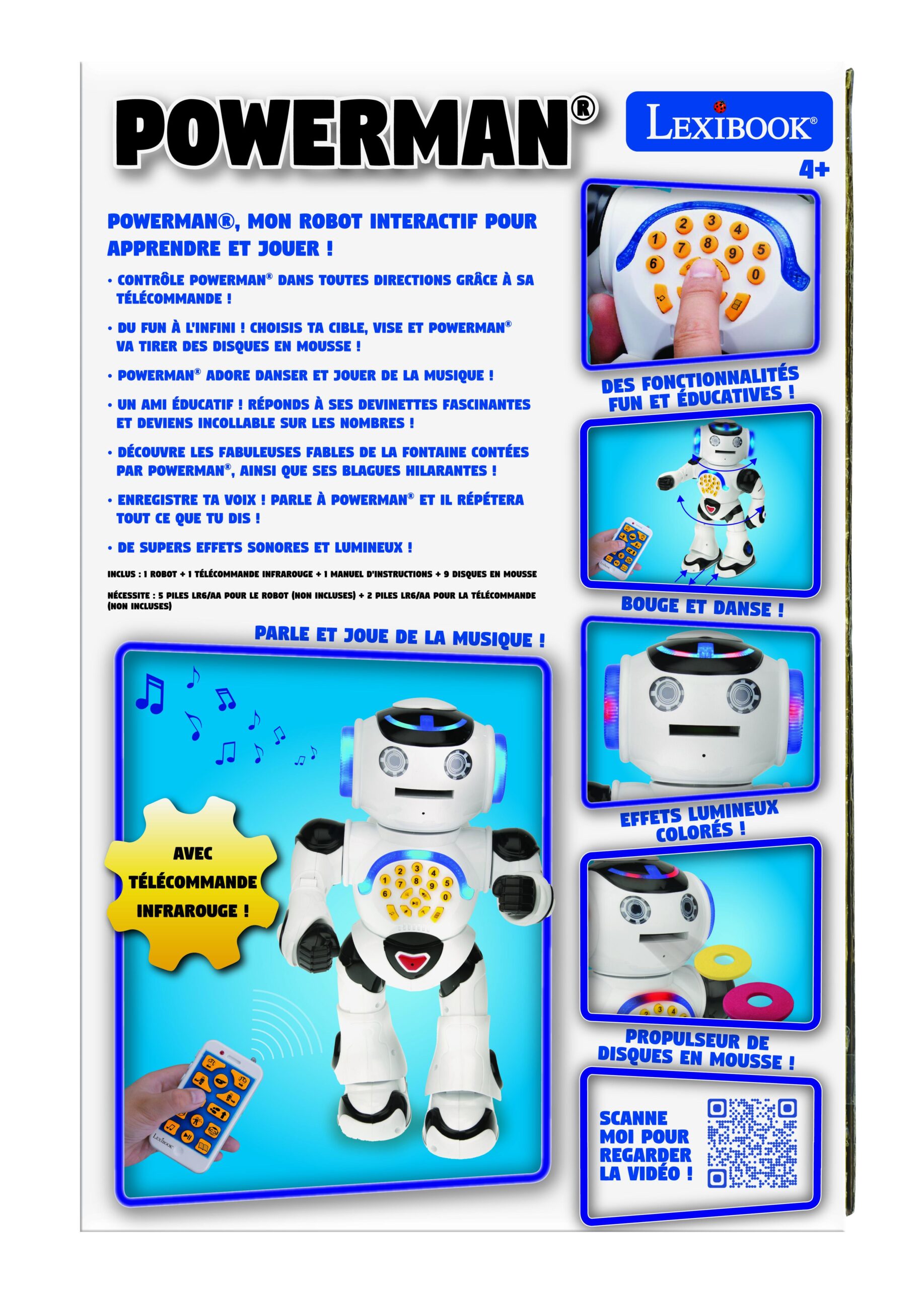 Interactif : Powerman parle, danse, joue de la musique et comprend de nombreuses lumières et effets sonores ! Educatif – Répondez à ses énigmes sur les chiffres, les animaux, la vie quotidienne… !