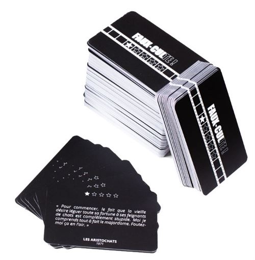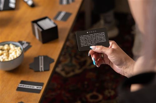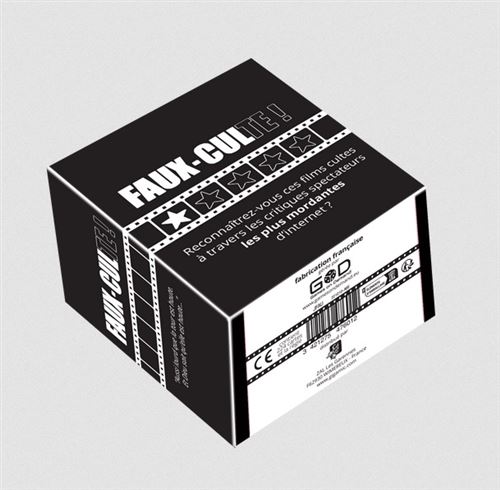 Un jeu pour se marrer qui contient 220 critiques spectateurs improbables sur des films tellement cultes que vous les connaissez, même sans les avoir vus ! À tour de rôle, chacun pioche une carte et déclame le commentaire avec le ton qui convient. Le premier parmi les autres joueurs, qui devine le titre du film, remporte la carte. À la fin de la partie, le joueur qui a remporté le plus de cartes remportent la partie. Contenu : 224 cartes, la règle du jeu.