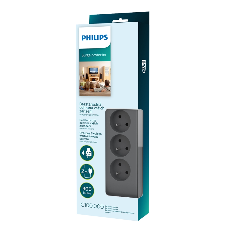 Multiprise parafoudre 60 broches PHIL-SPN3140A avec quatre prises et un cordon de 2 mètres. Protection contre les surtensions avec indicateur de surtension et de connexion. Équipée de 4 prises d’une capacité de courant de 16 A. Absorbe jusqu’à 900 joules et une charge maximale de 3680 W. Grâce à son cordon de 2 mètres, elle peut également servir de rallonge. Prise française de type E pour une utilisation en Pologne, République tchèque, République slovaque, République fédérale d’Allemagne et Belgique, conforme à la norme CEE 7/5.