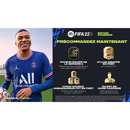 Dans FIFA 22, devenez une légende sur le terrain et menez votre équipe à la victoire pour devenir l’une des meilleures au monde. Découvrez un mode carrière repensé qui vous offre de nouvelles façons de progresser, de conquérir et de vous lancer dans une aventure footballistique inédite. Bénéficiez d’un gameplay encore plus réaliste grâce à la technologie HyperMotion, qui optimise la fidélité de chaque mouvement. Disponible en exclusivité sur Xbox Series X/S et PS5, FIFA 22 propose le retour des modes les plus populaires et appréciés des fans, tels que le mode Carrière, Volta Football, Clubs Pro et FIFA Ultimate Team. Jouez avec plus de 17 000 joueurs et choisissez parmi plus de 700 équipes pour concourir et remporter tous les championnats. De plus, le jeu propose des mécaniques de jeu améliorées, plus dynamiques et une intelligence artificielle optimisée, pour une défense plus précise.