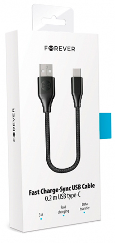Câble FOREVER Core USB – USB-C 0,2M 3A – Noir