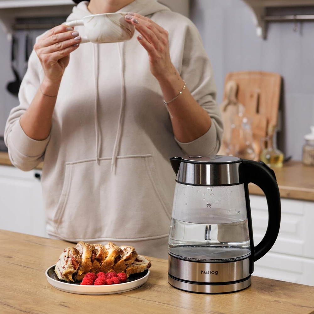Bouilloire Électrique En Verre HUSLOG Ak-0537 – Argent / Noir