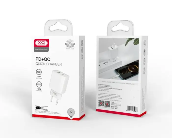 Chargeur mural XO CE02A PD – 1 Port USB, 1 Port USB-C, PD 20 W, QC 3.0, 18 W, CE02A – Blanc