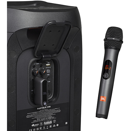 Compatible avec l’enceinte JBL PartyBox ; 3 micros peuvent être utilisés simultanément : un ensemble de 2 micros en Bluetooth ainsi qu’un micro en filaire