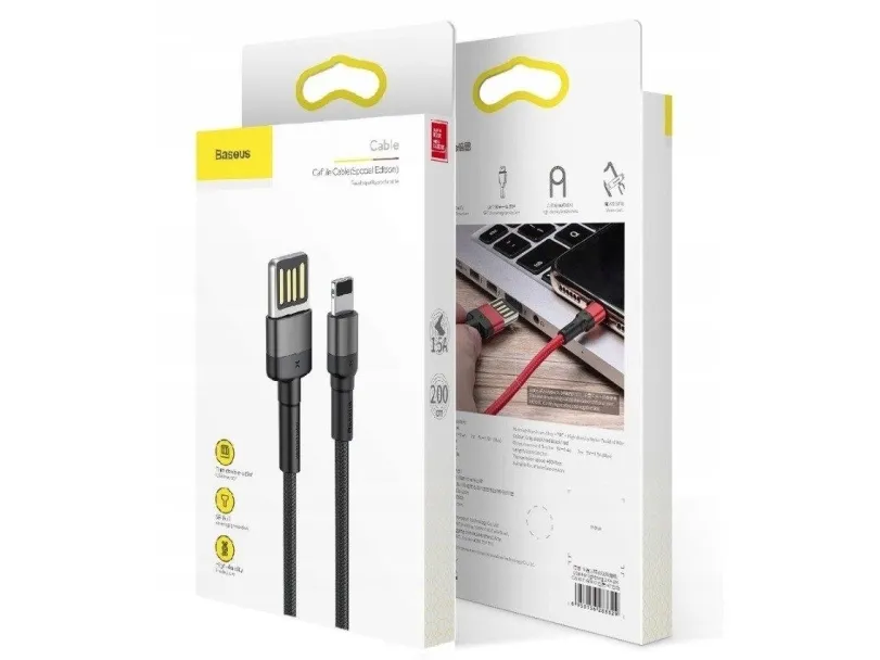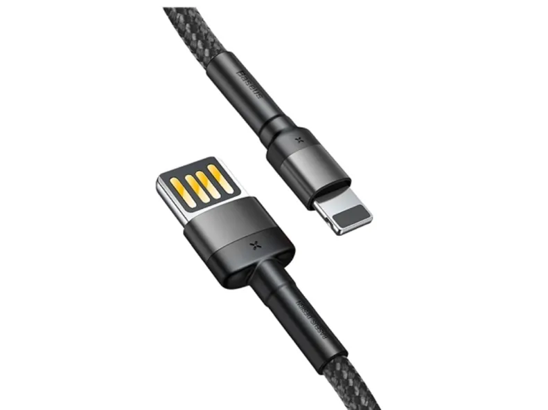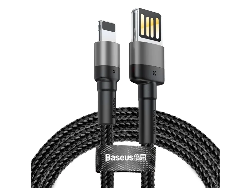 Câble Lightning Vers USB BASEUS Reversible Cafule 2.4A – 1M – Gris / Noir