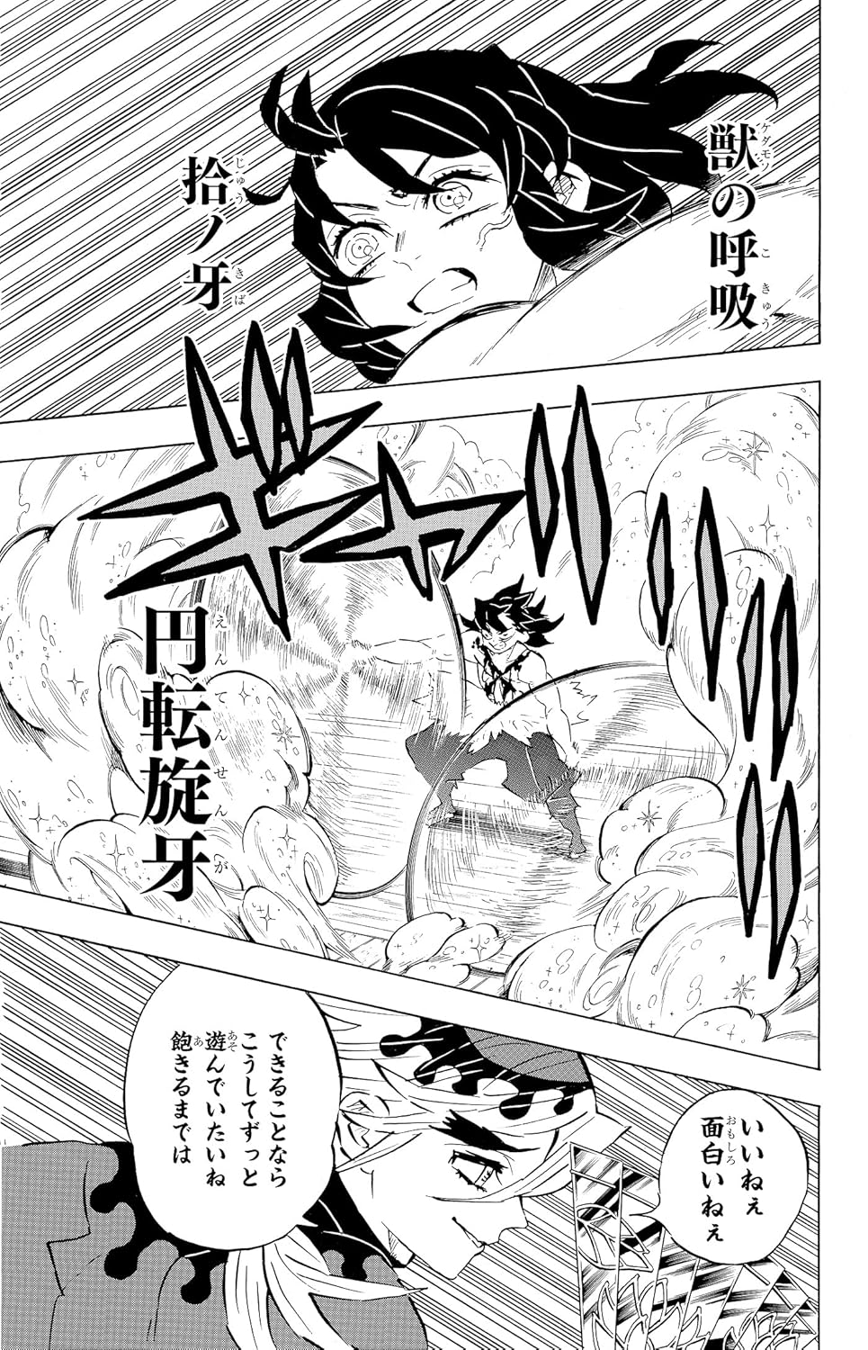 Le combat fait rage entre Doma, la 2e lune supérieure et les pourfendeurs Kanao et Inosuke. Les deux jeunes guerriers, tremblant de colère, parviendront-ils à venger tous ceux que Doma a dévorés ? Non loin de là dans la Forteresse Infinie, Mitsuri Kanroji, le pilier de l’Amour, et Obanai Iguro, le pilier du Serpent, font face à la nouvelle 4ème lune supérieure, tandis que Muichiro Tokito, le pilier de la brume, se retrouve face à la 1ère lune supérieure, qui lui fait une étrange révélation sur sa famille…