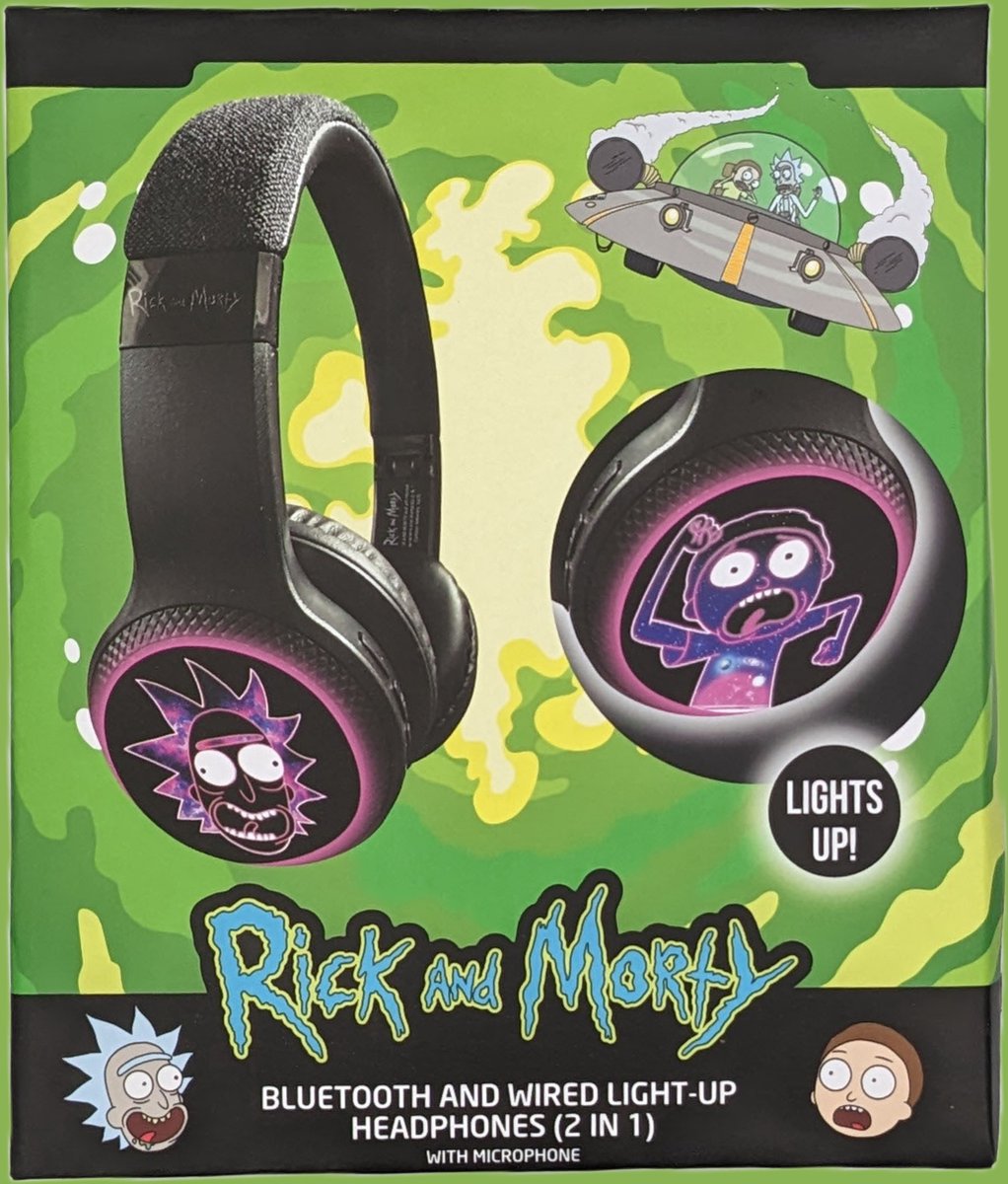 Écouteurs Bluetooth Rick & Morty Light Up – Avec Effets Lumineux, Microphone, Pliable